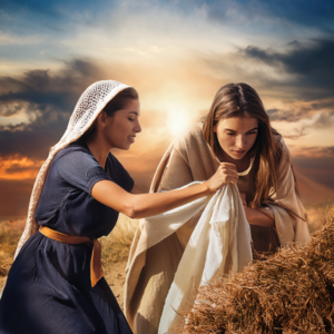 Naomi lebt mit ihrer Familie im Ausland, fern ihrer Heimat Bethlehem. Nach dem Tod ihres Mannes und ihrer beiden Söhne beschließt sie, nach Bethlehem zurückzukehren. Ihre moabitische Schwiegertochter Ruth besteht darauf, sie zu begleiten, mit den Worten: "Wo du hingehst, da will ich auch hingehen." In Bethlehem beginnt Ruth, für sich und Naomi zu sorgen. Sie sammelt Ähren auf den Feldern des wohlhabenden Boas, der sie schließlich heiratet. Ruth wird so Teil des Volkes Israel - und Urgroßmutter von König David.Die Geschichte erzählt von Treue, Solidarität und dem Vertrauen auf Gottes Fürsorge - auch in schweren Zeiten.