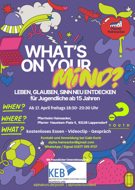 Informationen zu ELTERN-KIND-GRUPPEN im Landkreis Regensburg erhalten Sie, wenn Sie in der Geschäftsstelle der Regionalen KEB Regensburg Land anrufen. Entweder bei Frau Simone Röder, Tel. 0941 5 97 23 88 oder bei Thomas Albertin, Tel. 0941 5 97 23 87. Oder: Sie schreiben einfach eine Mail an info(at)keb-regensburg-land.de
